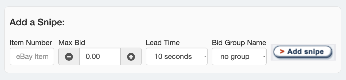 Es gibt mehrere Möglichkeiten, einen Snipe hinzuzufügen. Ein Snipe benötigt zwei Dinge: Eine Artikelnummer und einen Gebotsbetrag. Hier sind verschiedene Möglichkeiten, die Artikelnummer zu erhalten.