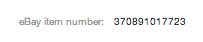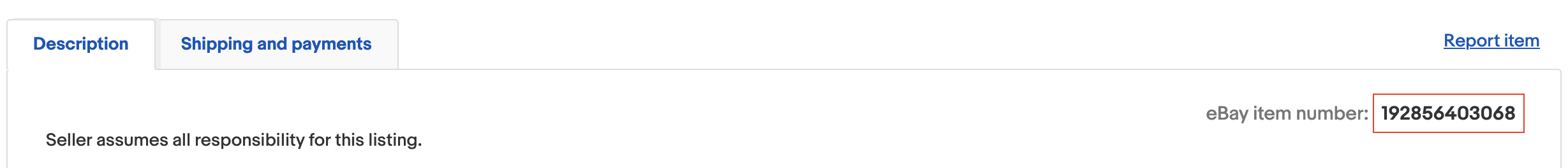 | Manuelle Eingabe | Langsam | Holen Sie sich die Artikelnummer, indem Sie die 12-stellige Artikelnummer in der eBay-URL oder aus der unteren rechten Ecke der eBay-Seite doppelklicken. ![]() |
