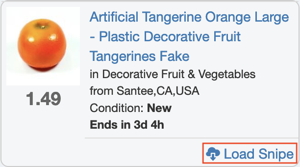 | Aus unserem Suchergebnisse-Tab | Schnell | Führen Sie eine Suche von oben auf Ihrem Dashboard auf jeder Seite durch, die Ihre Auktionen anzeigt. Klicken Sie für die interessante Auktion auf Snipe laden. ![]() |