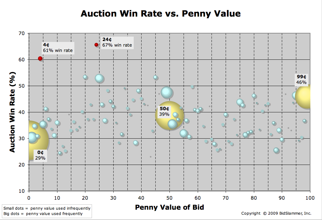 We welcome your questions, comments, or insights.This article, and the entire discovery and discussion of 4¢ and 24¢ as best last-second bidding values (c) BidSlammer October 2009. All Rights Reserved.